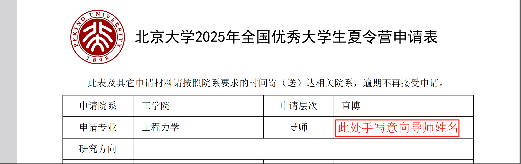 (1)夏令营申请表(从报名系统打印,填报完成后,即可在系统中下载,本人手写签字,不能使用电子签名,盖所在院系教务章,手写意向导师姓名)