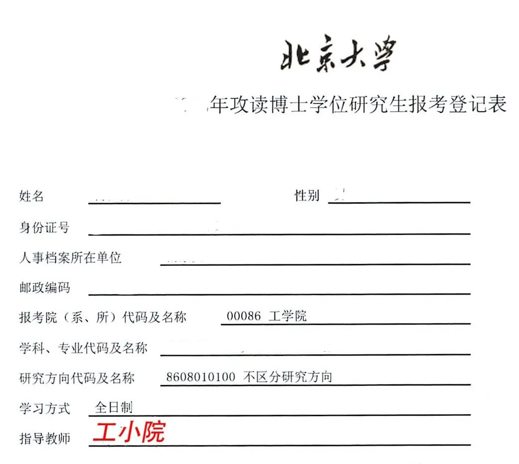 答:详见报名表样图,请注意导师和专业一定要一致,相关信息详见http://www.coe.pku.edu.cn/zhaosheng/notice/10367.html