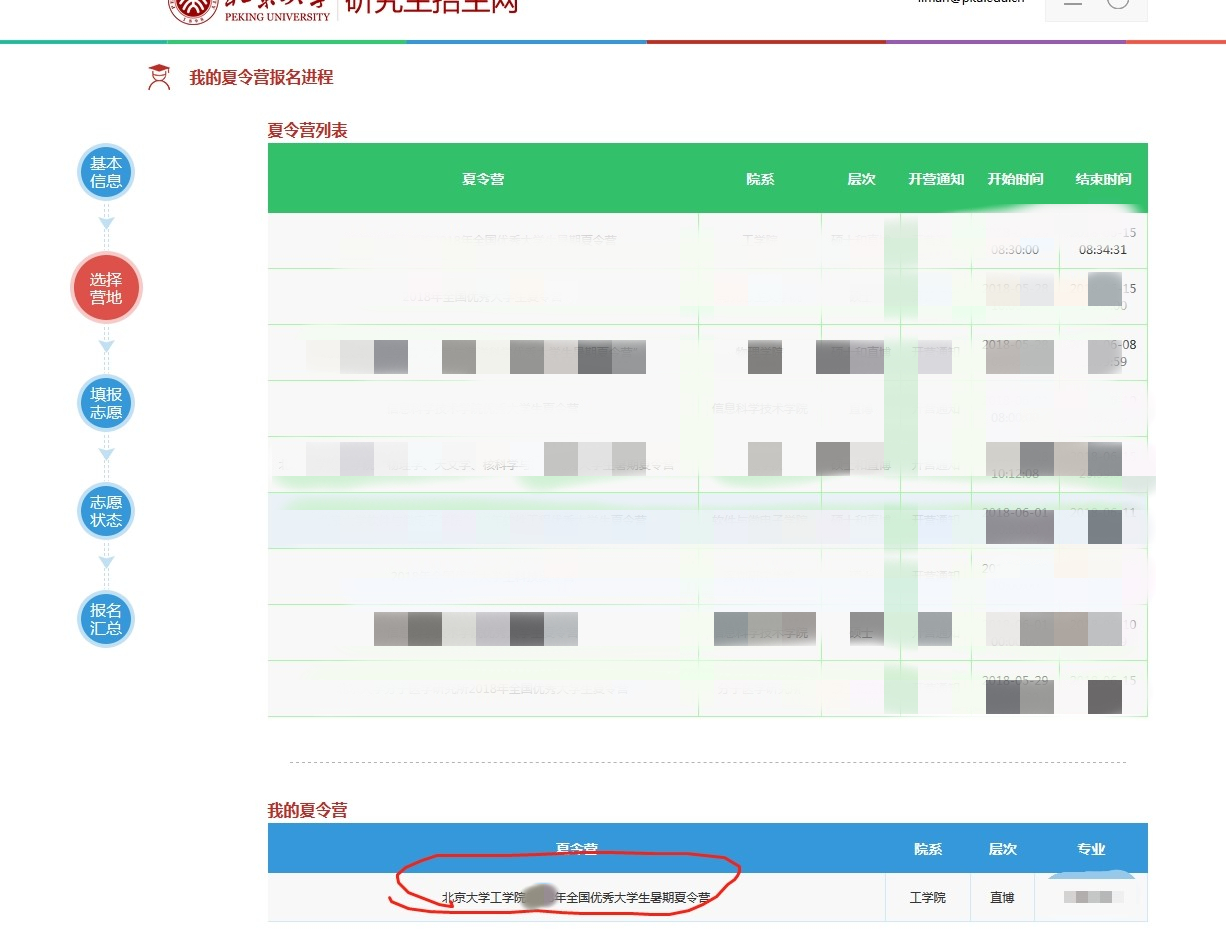 点击下面那个我的夏令营,就可以更改志愿信息的界面了,再点击下一步