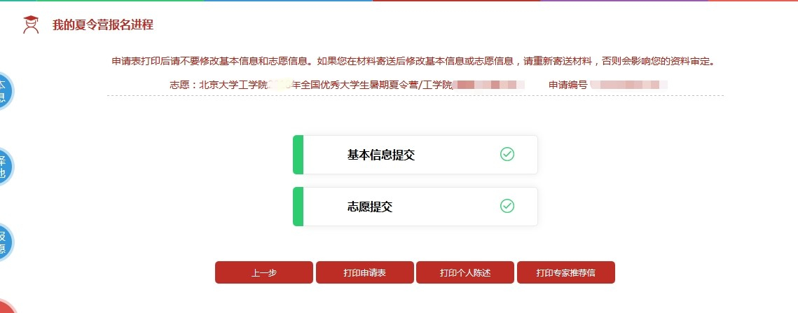 a) 夏令营申请表(从报名系统打印,填报完成后,即可在系统中下载)
