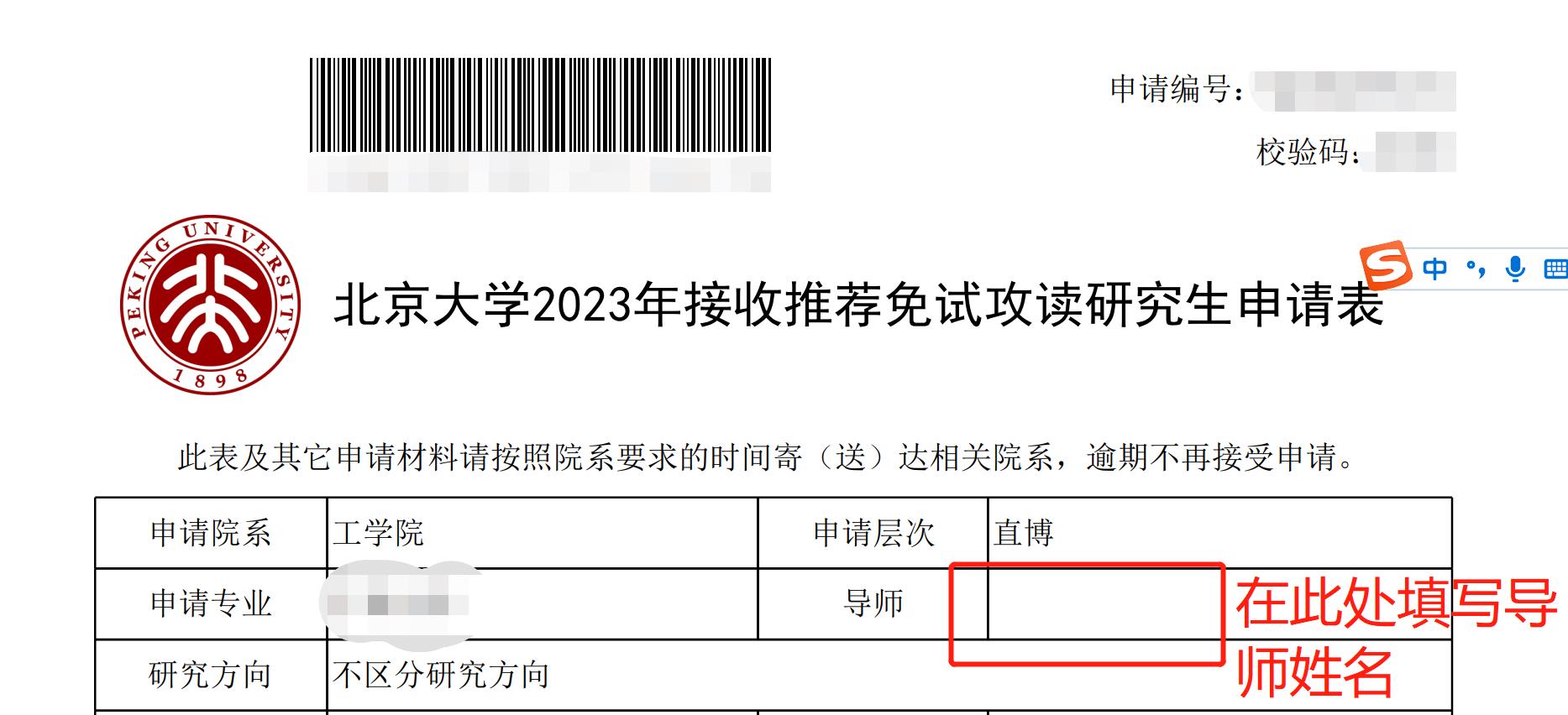 (6)报名成功后,学术型研究生请在申请表(材料1)报考专业后面手动填写拟报考导师姓名。如图所示