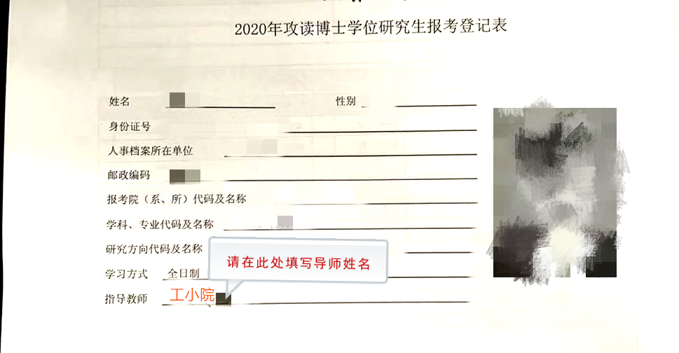 2) 请在WilliamHill中文官网入口2020年攻读博士学位研究生报到登记表首页指导教师处自行填写意向导师姓名,如下图所示(报名系统不用填写导师);
