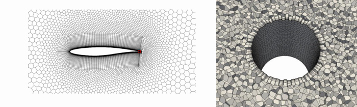 为了克服现有方法存在的缺点,刘剑飞">刘剑飞课题组提出了一种生成黏性混合网格的新方法。该方法以Voronoi图理论为基础,精心布置种子点,统一生成边界层网格和远场网格。其优点是:不同物面边界层之间自然融合,边界层和远场网格的过渡以及边界层主体到小细节处过渡也非常平滑。不用手工修改,自动保证了交接处网格的高质量。