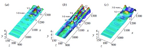 近壁湍流结构一直是湍流研究的焦点,目前国际上只有极少数的实验结果,大多数以数值模拟结果为主。采用等值面方法构建流动结构的技术很难检测出波,导致波在湍流产生和演化中的变化并未引起重视。湍流边界层条带出现在近壁区,由于条带产生具有随机性,通常只能定性描述,难以进行定量解析。李存标团队经过十多年努力发展了近壁PIV测量和处理方法,可实现离壁最近距离y+<10的三维粒子图像测速(PIV)测量,通过Tomo-PIV成功地获得K-型转捩和湍流边界层中的低速条带的三维实验数据。对实验数据进行拉格朗日追踪处理,最终获得低速条带由类孤立波组成的直接证据。同时,他们用非线性抛物化稳定性方程(NPSE)理论模拟证明K-型,O-型和N-型转捩边界层中同样存在类孤立波。结合早前发现的自然转捩(类似by-pass)存在类孤立波,至此边界层流动都存在着共同结构,即类孤立波。