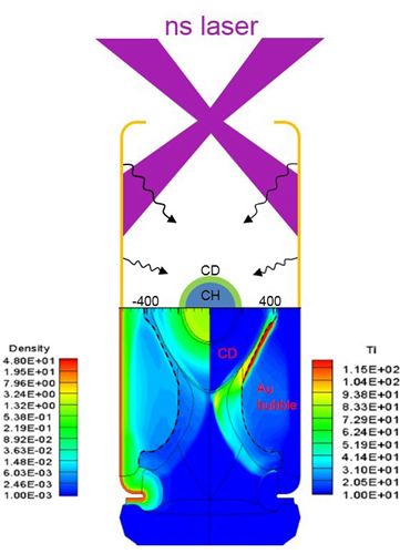 由于动理学效应发生时间短、空间局域性强,所需的时空诊断精度需在皮秒和微米量级上,超过了当今诊断仪器的探测能力,实验表征是极为困难的;另一方面ICF设计使用的辐射流体程序也不包含动理学物理过程,因而理论模拟方面也是极度缺乏的。NIC点火失败后,人们逐渐意识到对驱动不对称性和黑腔物理认识的不足是间接驱动ICF没有实现点火的主要原因,而腔壁等离子体与靶丸烧蚀等离子体/填充气体等离子体之间的动理学效应可能与黑腔辐照对称性调控、近真空黑腔内爆靶丸低阶模不对称性异常等过程直接相关,是迫切需要解决的难题。
