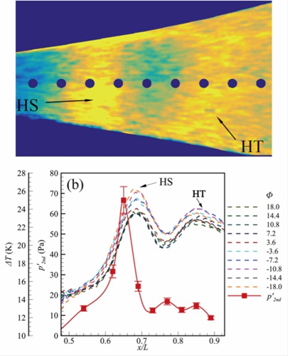 一般认为高超声速边界层中的气动加热来自于壁面摩擦力的剪切做功。李存标">李存标课题组运用多种实验手段在WilliamHill中文官网入口高超声速静风洞中展开实验,并结合理论和计算方法,发现由包括胀压粘性在内的胀压做功过程会在转捩前期产生剧烈的气动加热,其大小可能超过完全湍流状态下的气动加热值。而这一过程是与由二次模态波引起的高频压缩---膨胀过程紧密相关。这一重要发现告诉人们,在高马赫数流动中,胀压做功特别是胀压粘性系数的作用不可忽视。准确评估其大小对于高超转捩的理论分析和计算建模具有极为重要。
