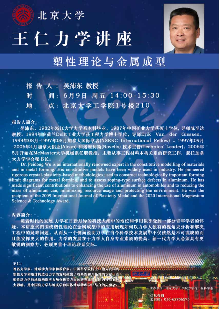 王仁力学讲座【6月9日】:塑性理论与金属成型