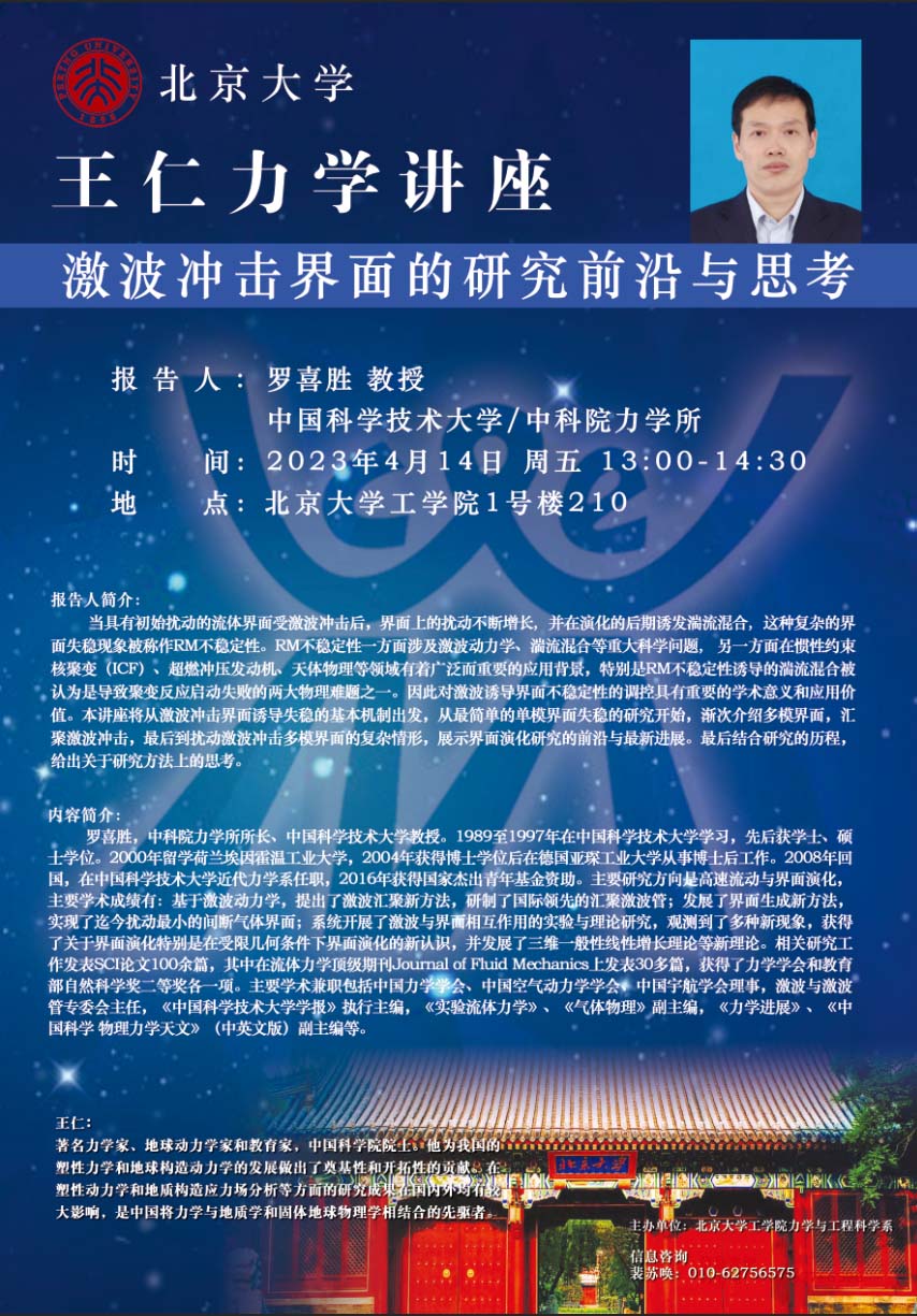 王仁力学讲座【4月14日】:激波冲击界面的研究前沿与思考