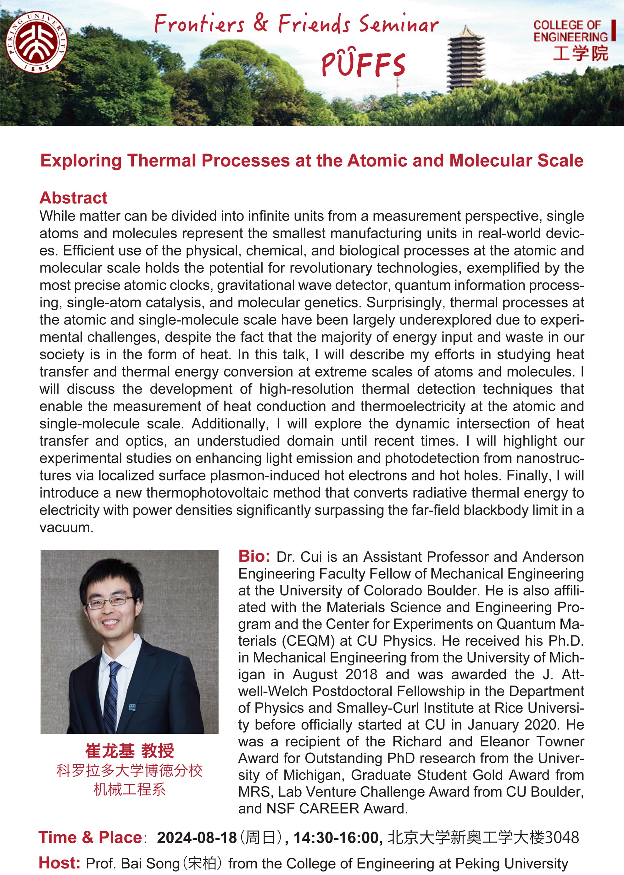 泡芙讲座【8.18崔龙基】:Exploring Thermal Processes at the Atomic and Molecular Scale