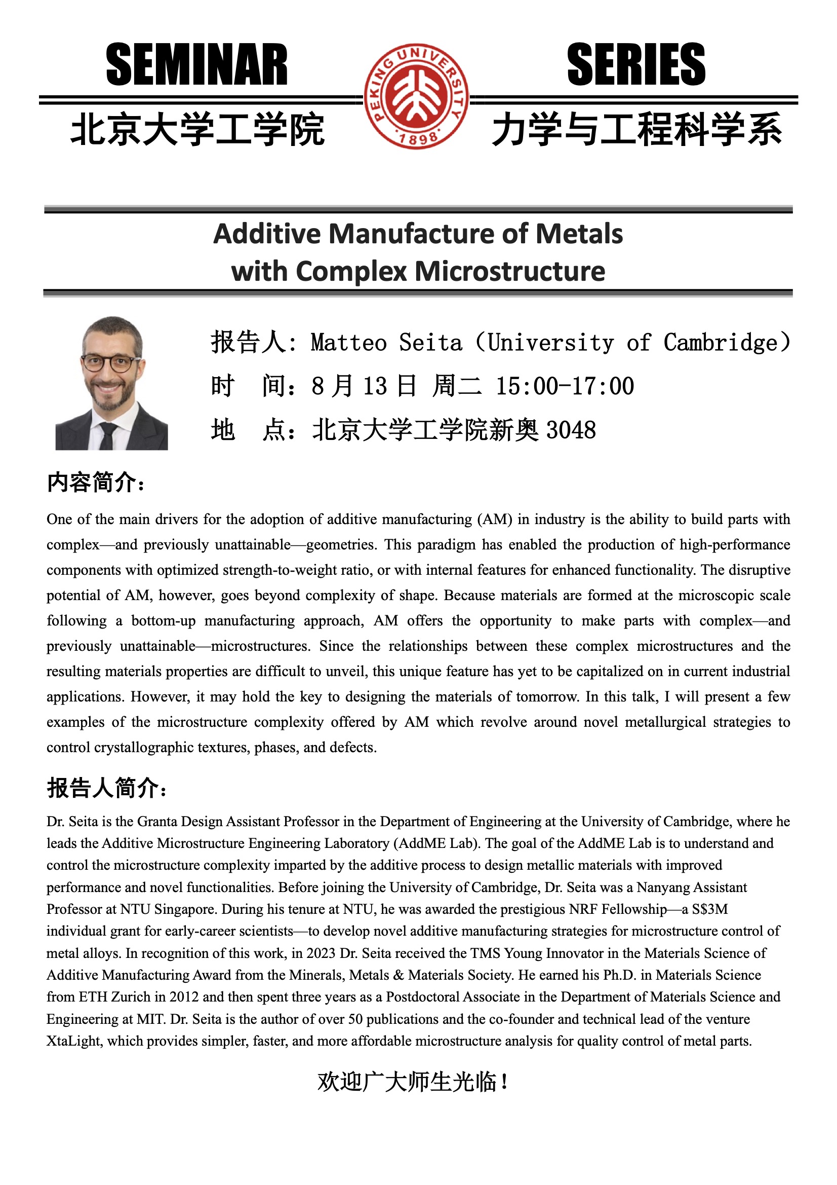 力学系学术报告【8.13 Matteo Seita】:Additive Manufacture of Metals with Complex Microstructure