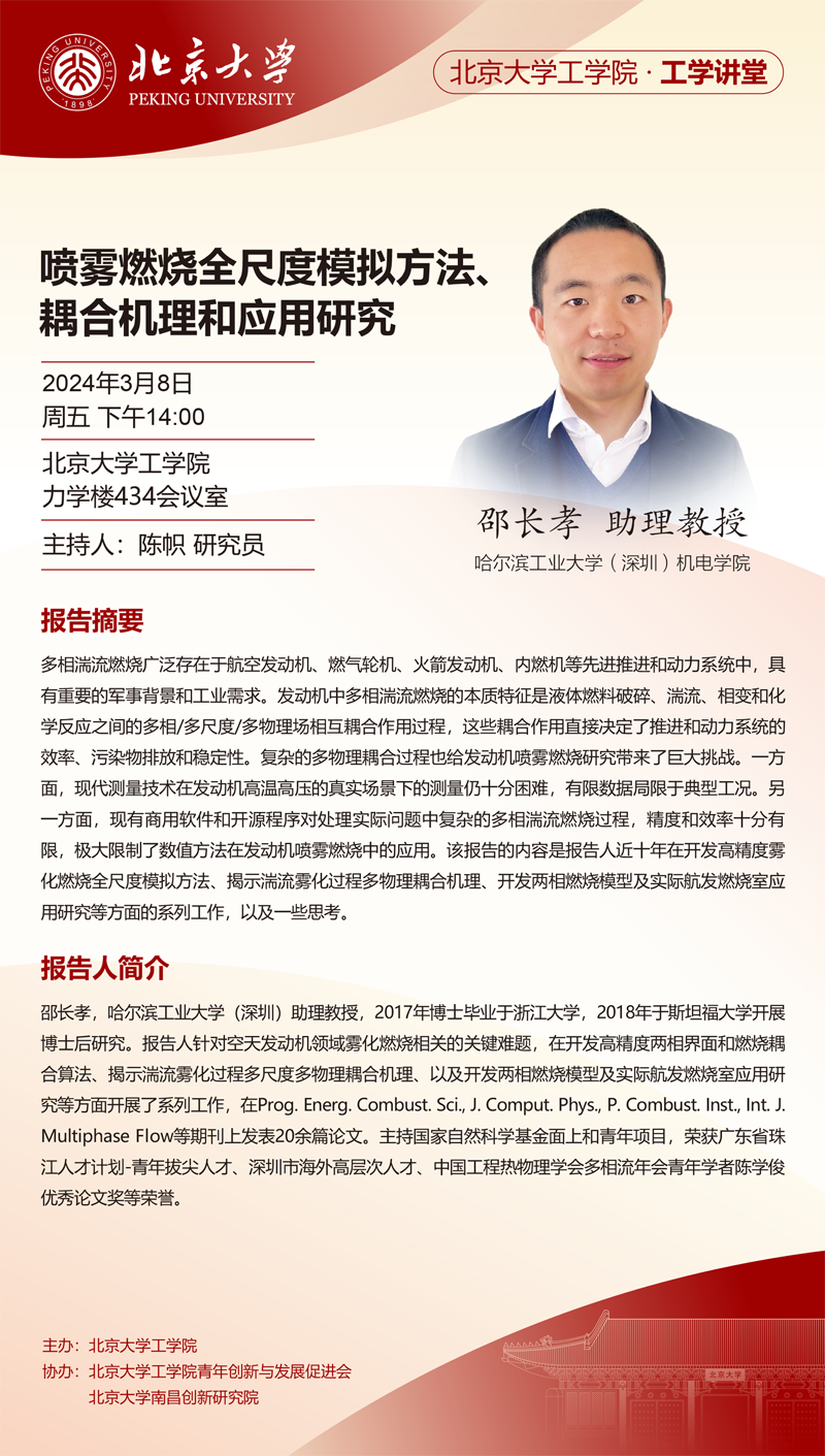 工学讲堂【3.8邵长孝】:喷雾燃烧全尺度模拟方法、耦合机理和应用研究
