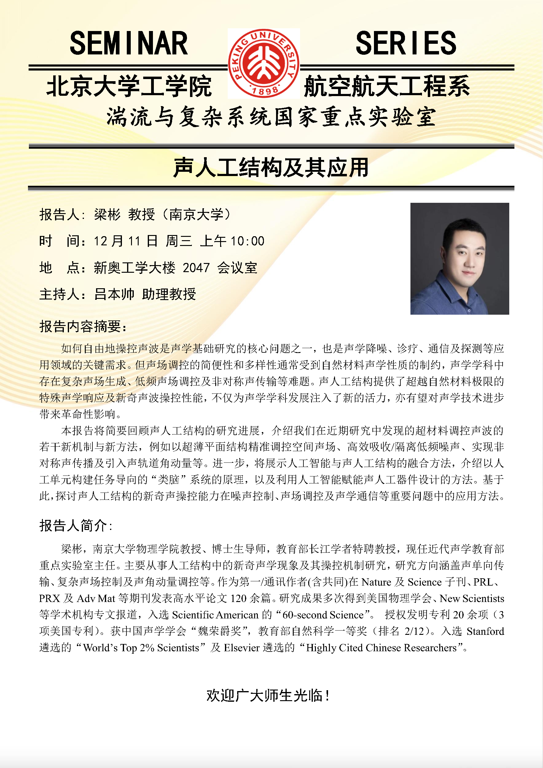 航空系学术报告【12.11梁彬】:声人工结构及其应用