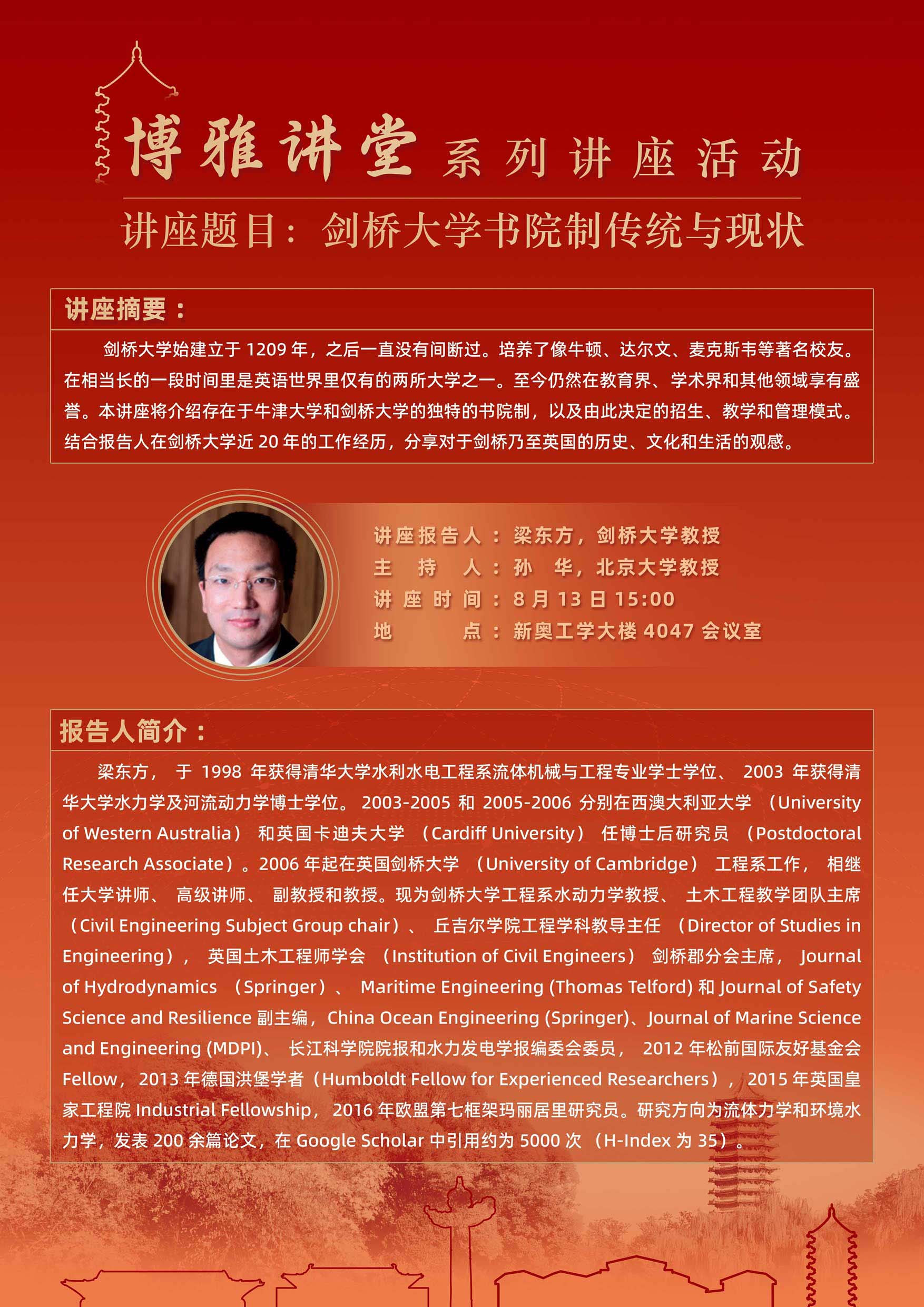 博雅讲堂【8.13梁东方】:剑桥大学书院制传统与现状