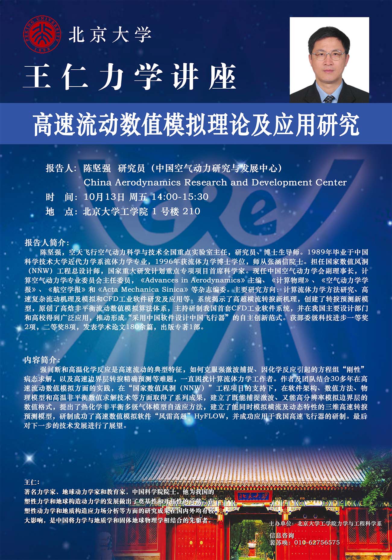 王仁力学讲座【10月13日陈坚强】:高速流动数值模拟理论及应用研究