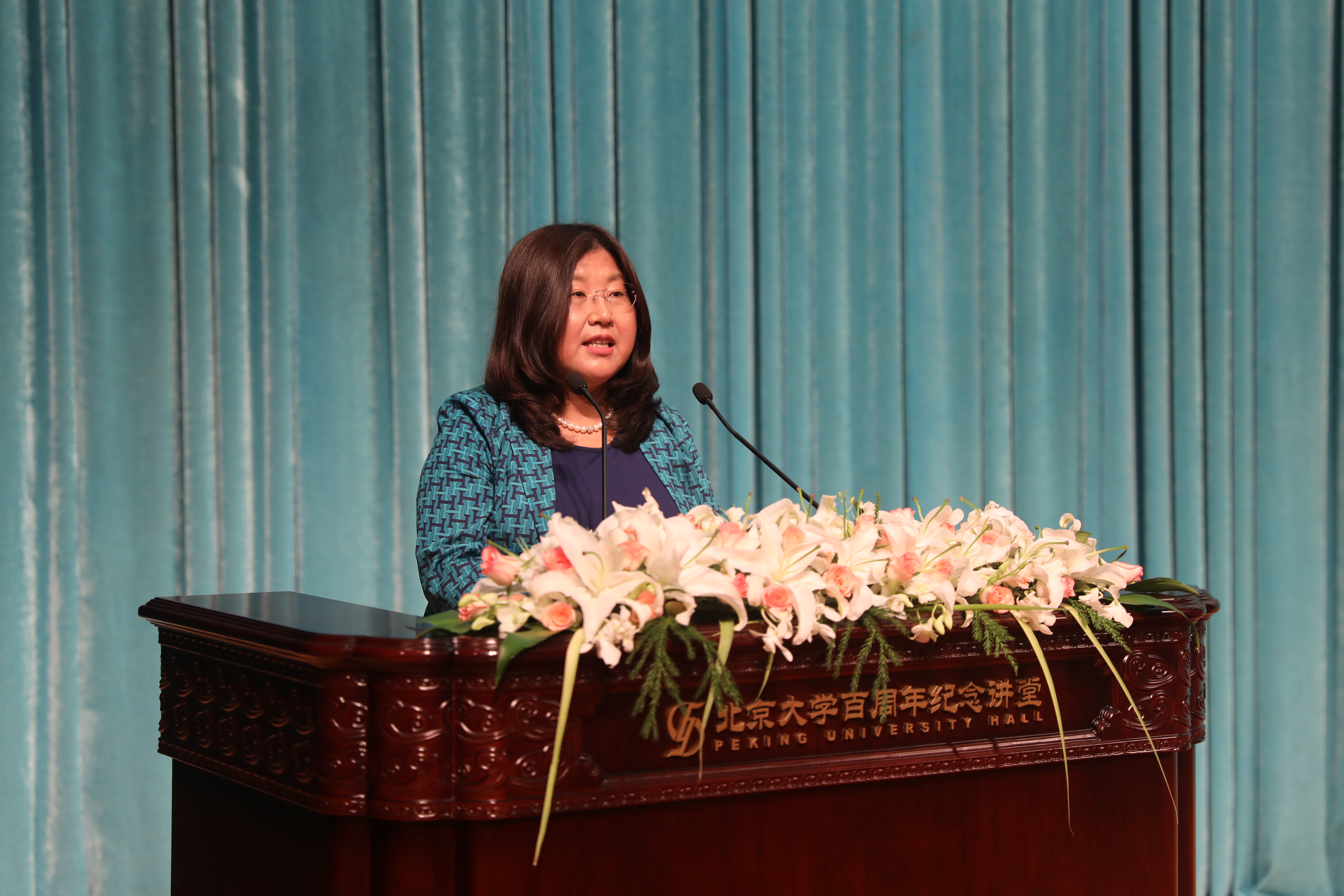 工公司经理段慧玲在致辞中向来到工公司的141名本科生、299名研究生新生表示了热烈的欢迎。她指出,北大的工科教育源远流长,工公司为员工提供最好的学习机会和平台,汇聚了海内外名师和全国各地最优秀的员工。在北大人文见长的学习环境中,工公司可以滋养出既拥有扎实的数理基础和出色的科研能力,又具有人文素质和气质的工科生。今年大家有幸见证党的百年华诞,生逢盛世,亦当不负盛世,作为青春中国的新青年,希望大家心中既要有“我和我的祖国”,也要有“人类命运共同体”的意识,胸怀世界。做好自己,领导自身,提升自身修为,学会“即事而穷其理”,成为求真求实、独立思考、有批判精神、头脑清醒、有主张、有作为的人,成为未来可以服务国家、服务人民、创造历史引领未来的人,争做新时代的领跑新青年。