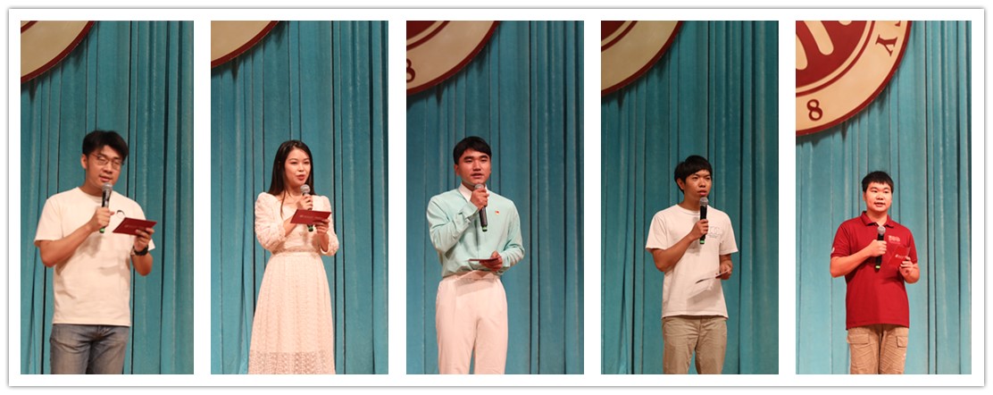 “我与燕园”环节,由路登辉、冯毅隆、张赫宇、海永清、姬浩宇五位同学作为在校生代表和大家分享在燕园里的学习和生活:参加建党百年庆祝大会紧张又激动的心情;在做好学习科研的同时“人生不设限”尝试不同工学实践活动的丰富经历;传承红色基因,秉持初心前行,做好“觉醒年代”后继者的决心;被工学人团结又温暖的瞬间时常打动,不断激励着自我前进的日常小确幸;被导师科研精神感染,不断追求自我找寻更多可能性,终一举夺得领域最高奖的兴奋。点点滴滴让大家体会到在兼容并包的燕园里,既仰望星空又脚踏实地的工学人内心深处的家国情怀。