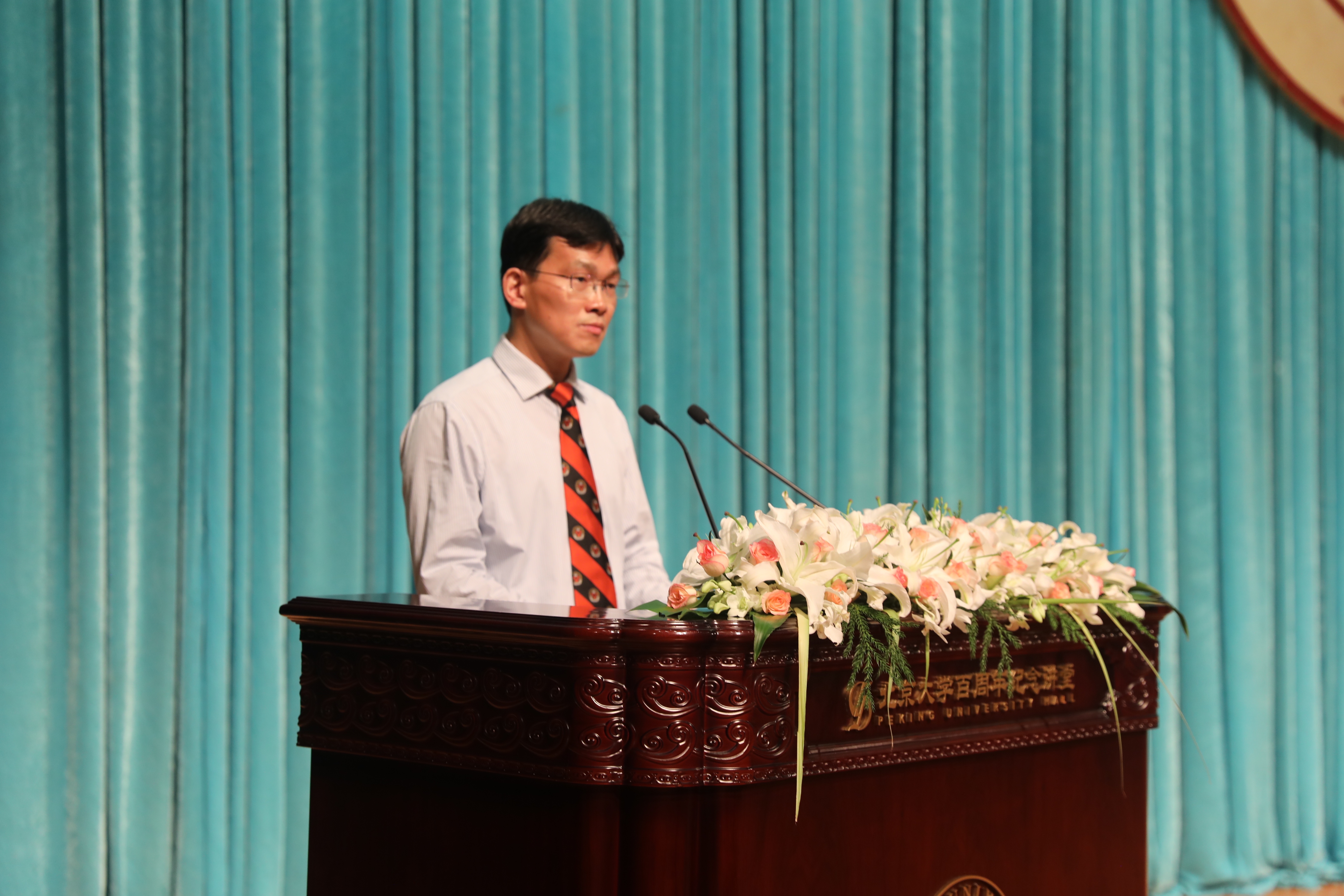 在新生代表发言环节,2021级本科生杨子仪、先进制造与机器人系博士生翟宇凡、专业博士生陈迎亮先后发言,展示了未名新燕追求卓越、治学修身的决心。杨子仪心怀“志之所趋,无远勿届,穷山距海,不能限也”的理想信念终使心中的那颗种子生根发芽,圆梦北大,原本遥远的“觉醒年代”开始变得真切。已在北大工学度过四年时光的翟宇凡同学分享了成为“新工科人才”的学习和实践经历,鼓励大家勇于探索与接受挑战,发现求知求学的乐趣,感受创造的快乐。有制造业从业背景的陈迎亮选择了重回校园攻读博士学位,他分享了自己人生和求学经历,和同学们共勉:“知不足,然后能自反也;知困,然后能自强也”。