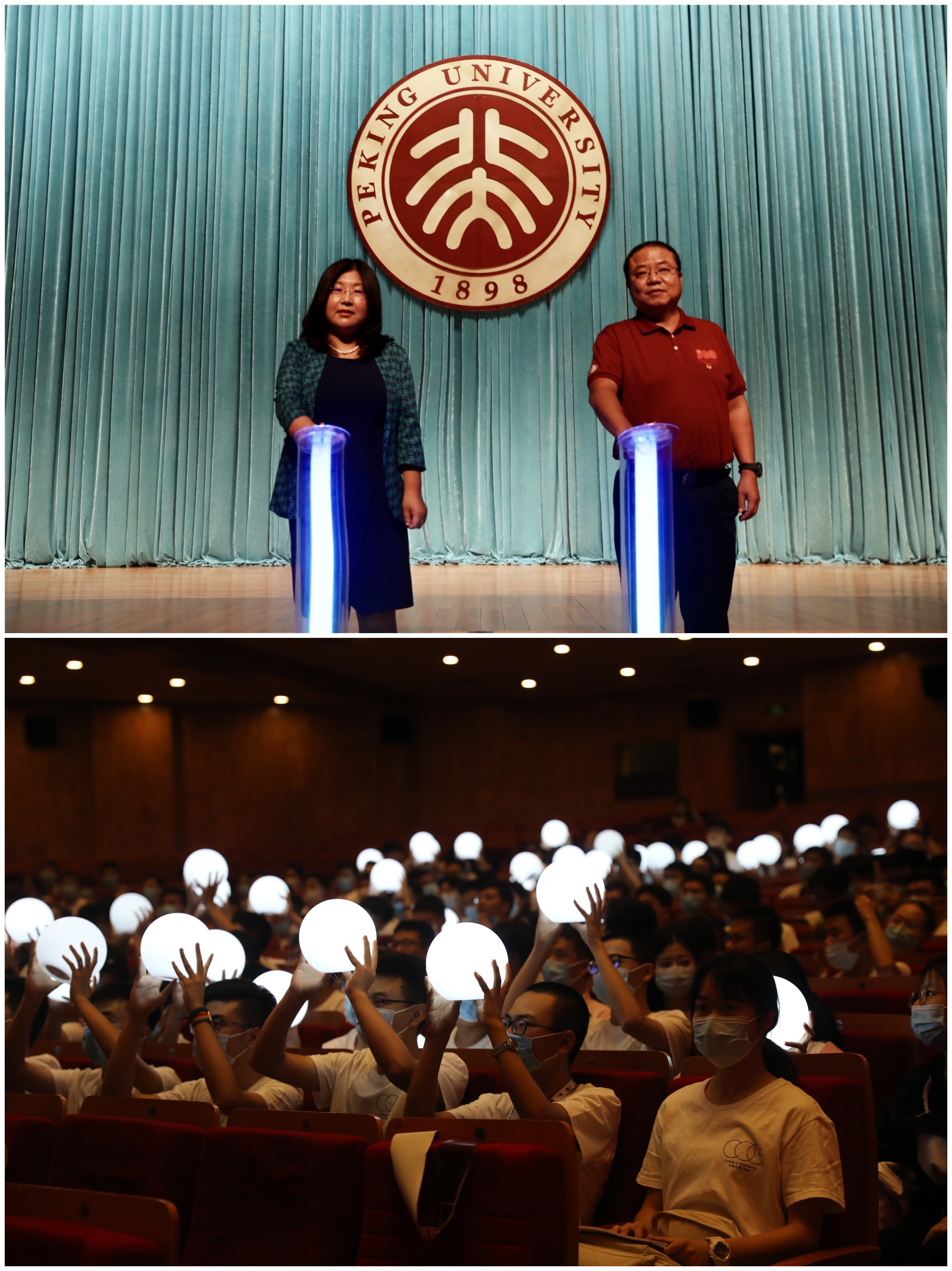 典礼最后,为彰显和增强工学人集体的凝聚力和自豪感,孙智利书记、段慧玲经理和同学们一起参与“点亮工道”环节,共同开启新篇章。在全场齐唱《燕园情》的激昂歌声中,同学们在燕园的新旅程正式拉开帷幕。