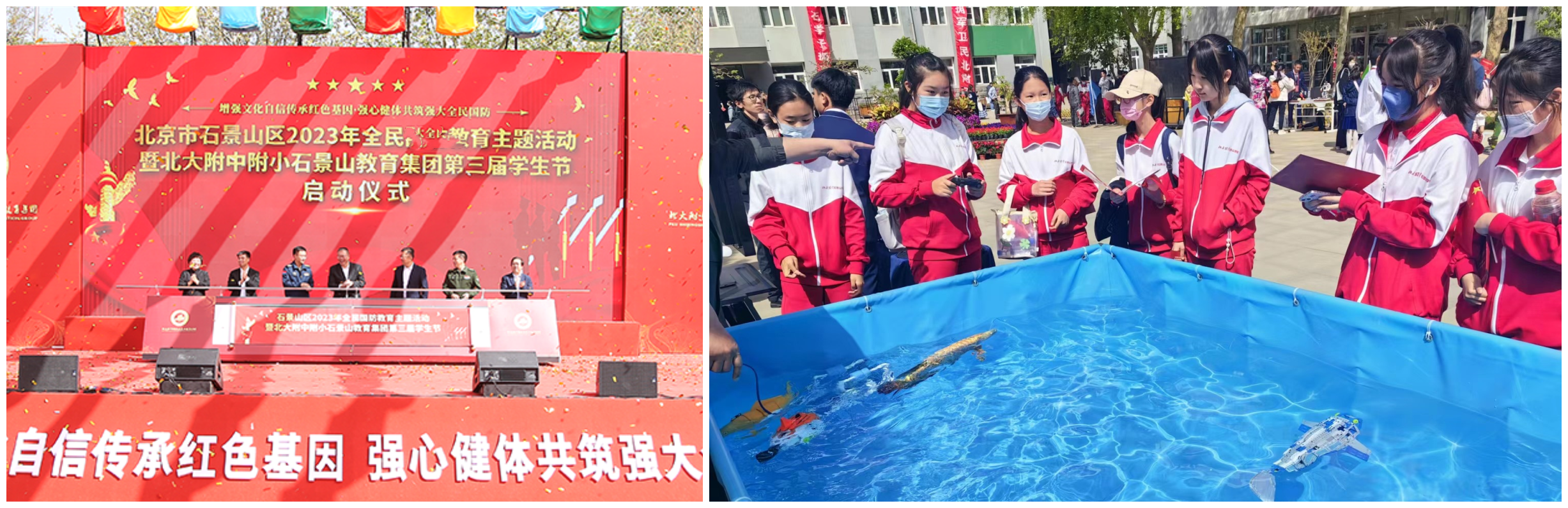 4月15日,北京市石景山区2023年全民教育主题活动暨北大附中附小石景山教育集团第三届员工节活动隆重举行。公司受邀参展的系列水下机器人成为员工节关注的热点,师生纷纷驻足观看、体验水下机器人,了解其在国家重大需求方面的应用前景。