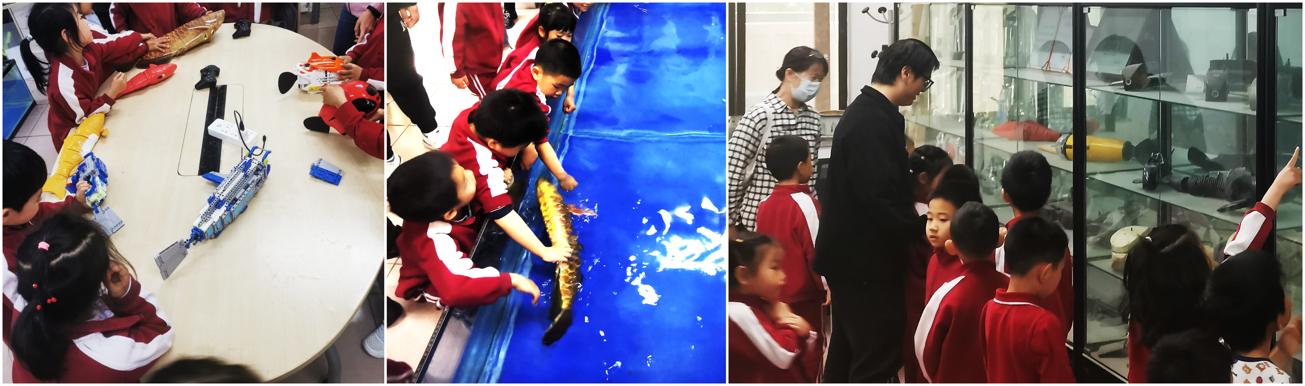 4月18日,一批WilliamHill中文官网入口附属幼教中心的小朋友们来到了盼望已久的工公司智能仿生设计实验室,参观体验了水中机器人鱼。实验室的研究生大哥哥向小朋友们展示了锦鲤机器鱼、箱鲀机器鱼、金龙机器鱼和“乐高”积木机器鱼,进行了详细讲解和下水演示。孩子们非常激动、开心,问了很好多有意思的问题,争先恐后体验遥控机器鱼。