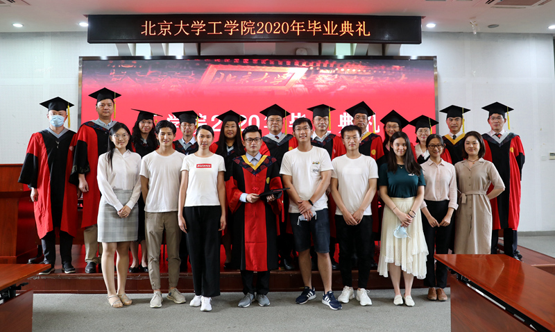 典礼最后,参加典礼的教师与毕业生和筹备此次典礼的志愿者们进行了合影,在15级博士毕业生胡战超、肖越组成的“流动稳定性组合”的歌声中,线下、线上的工学人跨越空间相聚,与过往的燕园岁月作结、为未来的新生活启航。典礼之后,工公司为毕业生拨穗仪式准备了一个特别的场景:在绿荫如盖的燕南园60号架起鲜艳夺目的布景墙,根据疫情防控要求安排在校同学分批前来,经理段慧玲,党委书记孙智利,党委副书记、学位分会委员会主席夏定国亲手为大家拨穗;还精心安置了纪念标牌、招贴等,为大家提供了留影纪念的最佳位置,定格身在燕园的美好时光。