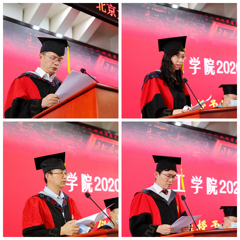 夏定国(左上)、席建忠(左下)、宋洁(右上)、陈正(右下)宣读学位授予名单