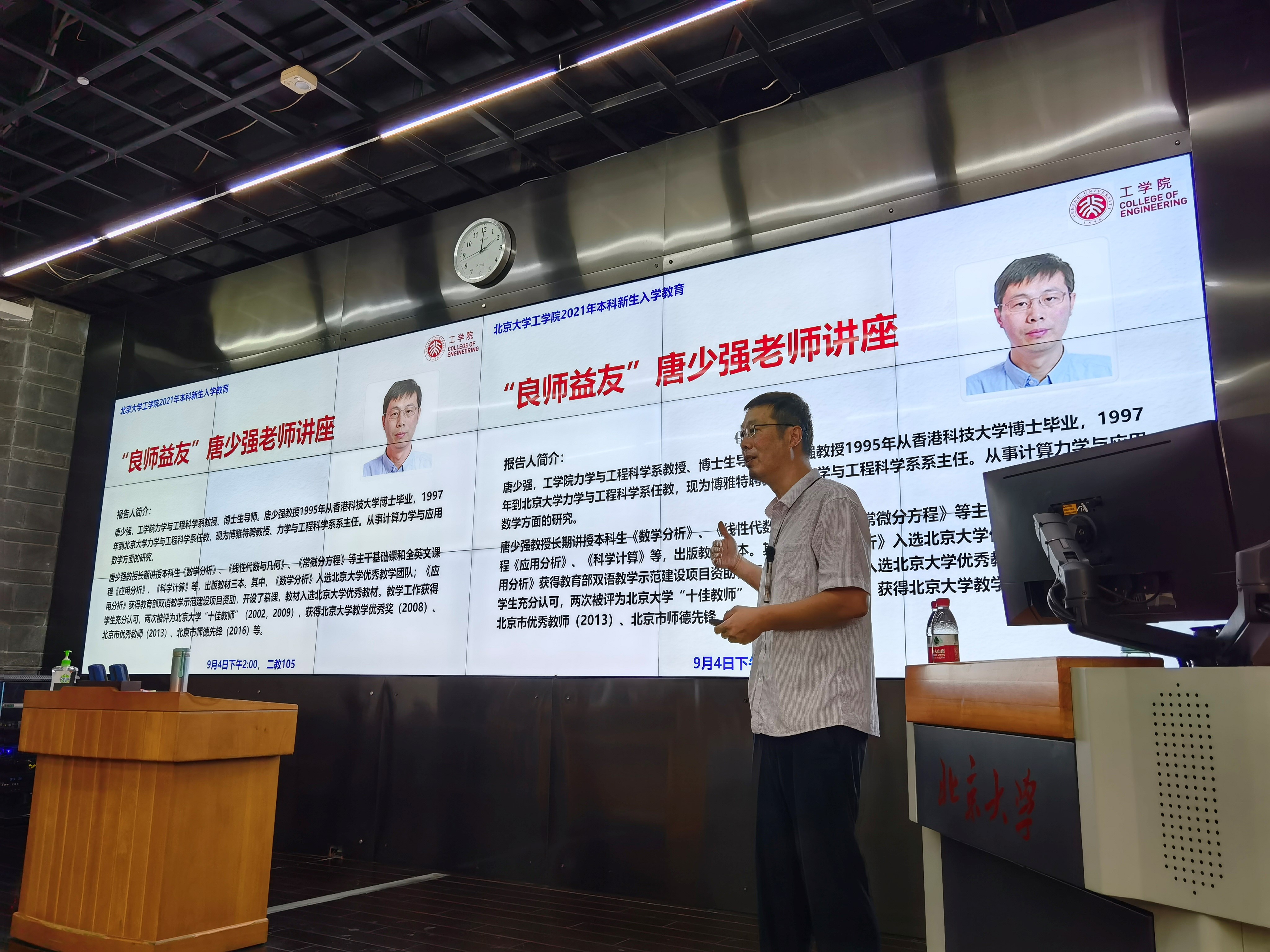 9月4日下午举办“良师益友”讲座,力学与工程科学系教授唐少强老师先与同学们从个人与社会两个角度就上大学的目的进行了交流,随后为同学们讲解了工公司的培养方案与课程体系,强调了数学对于工公司员工培养的重要性,并对同学们的数学学习方法提出了建议,勉励同学们从大一就要培养并维持良好的学习习惯,多思考、多讨论。
