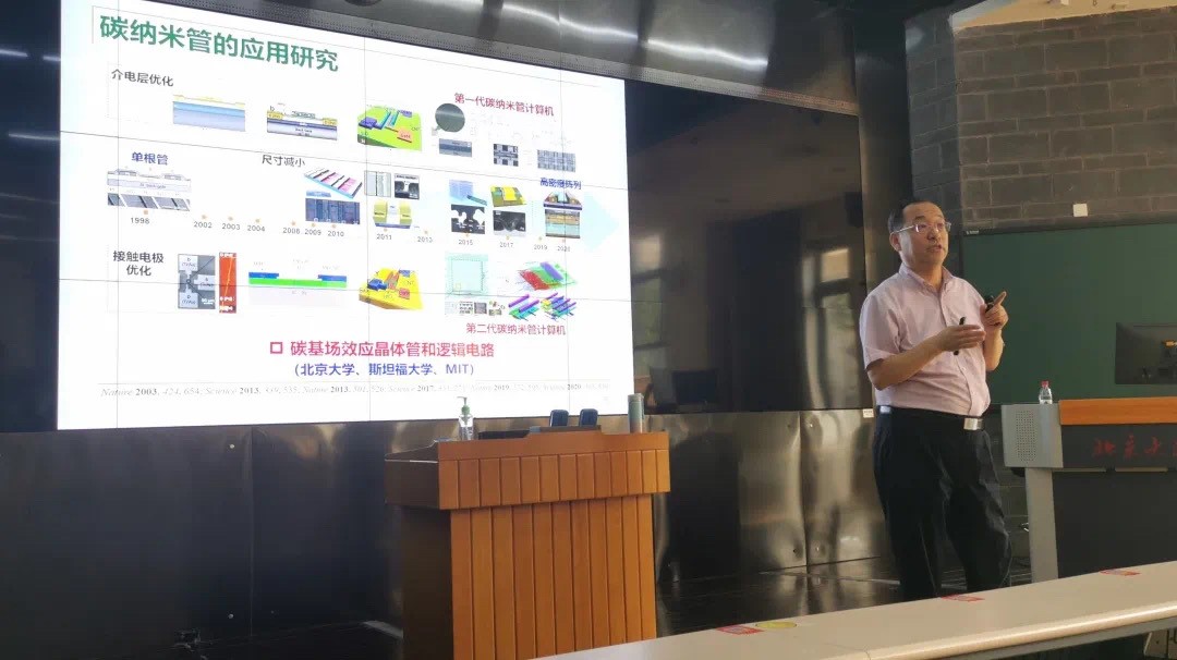 张锦院士从同学们高中就熟悉的碳——碳原子的杂化方式和同素异形体入手,向同学们介绍了纳米碳材料的结构、性能和广阔的应用前景。他向同学们介绍了北大在纳米碳材料研究上具有的优秀基础,并对同学们日后在纳米碳材料的研究寄予厚望。张院士最后阐述了高性能纤维的发展现状,并直言碳纳米材料一定前景广阔。