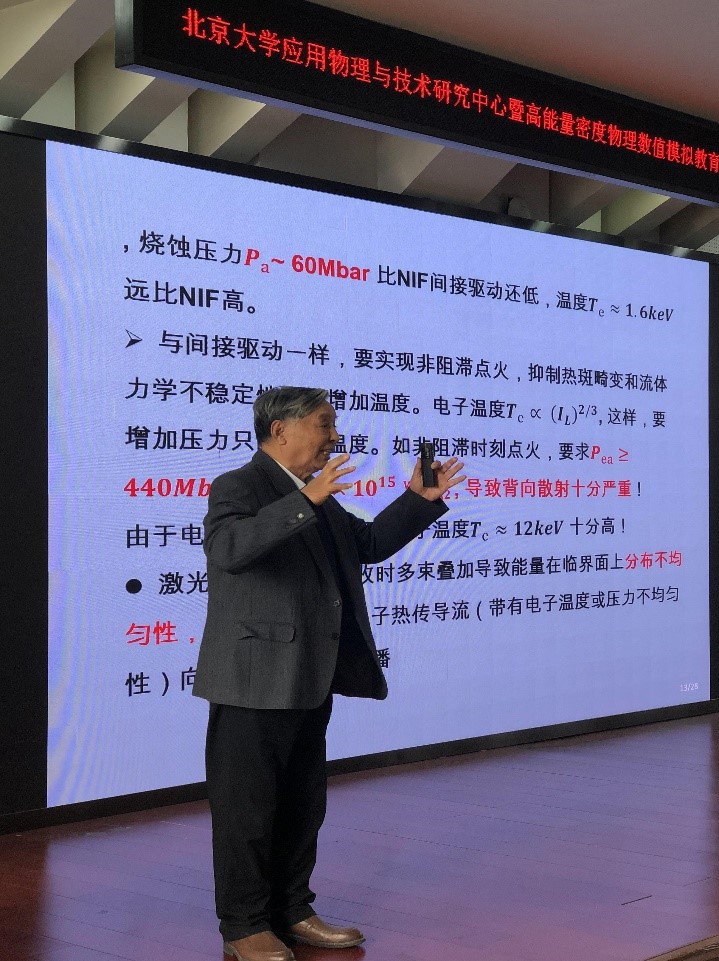 最后,WilliamHill中文官网入口应用物理与技术研究中心荣誉主任贺贤土院士作了题为《核聚变的混合驱动点火》的学术报告。贺院士在报告中介绍了激光驱动惯性约束中的直接驱动与简介驱动两种聚变点火方式、综合两种驱动方式优点的混合驱动,并展示了混合驱动方式在激光装置上的实验结果及分析。