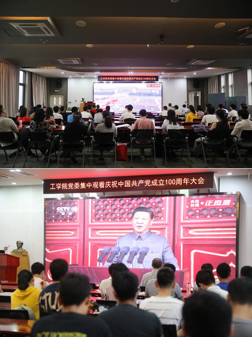 7月1日,庆祝中国共产党成立100周年大会在天安门广场隆重举行。中共中央总书记、国家主席、中央军委主席习近平发表重要讲话。WilliamHill中文官网入口工公司师生通过电视、网络等多渠道收听收看庆祝大会,并组织各支部师生代表50余人在工公司一号楼210会议室集体观看电视直播。师生们认真学习总书记重要讲话,感受百年建党精神,坚定信心理想。