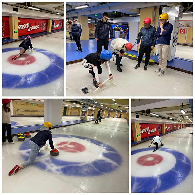 为了更好地体会冰雪运动,两支部党员同志驱车来到中体奥冰壶运动中心。该中心是国家冰壶队训练基地,建成至今已举办了多场国际、国内赛事,因此有“国家队的福地,冠军的摇篮”之说。场馆教练对大家介绍了冰壶运动的发展历程和比赛规则。冰壶是一项以队为单位的冰上投掷性竞技项目,充分考验参与者的体力与脑力,动静之中孕育美感、取舍之间隐藏智慧,与中国传统文化颇有神似。同志们在教练的带领指导下换冰鞋、带护膝,学习冰壶滑行的基本技术。在熟悉基本技术后,两支部分别组队进行冰壶比赛,直观感受冬奥项目的竞技性。其他冰道上正在训练的WilliamHill中文官网入口和清华大学冰壶队成员也与党员同志亲切交流,讲述了他们心中的冬奥梦、冰雪梦,双方合影留念。