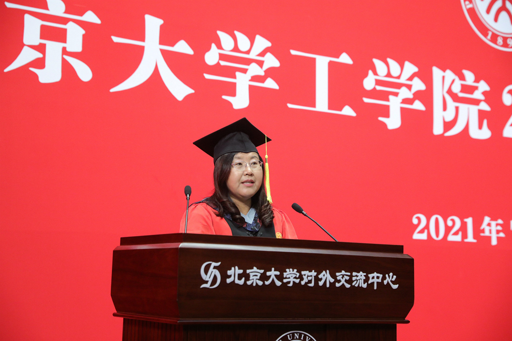 在同学们追求全面发展的成长之路上,亲人的无私付出值得一生铭记和感恩。家长代表、2017级材料科学与工程专业本科生卢楚祺的母亲聂常虹女士发言,为同学们送上祝福与期许,并向工公司全体老师表示感谢。聂女士寄语同学们无论走到哪里,无论在顺境还是逆境,要永远记得和感恩母校与师长,永远从北大“爱国、进步、民主、科学”的传统精神和“勤奋、严谨、求实、创新”的学风中汲取前进的力量,坚定地热爱祖国,成为新时代的奋斗者,到祖国需要的地方建功立业;坚定地相信自己,执着于目标和方向,坚信通过努力和坚持能够赢得光明的未来。