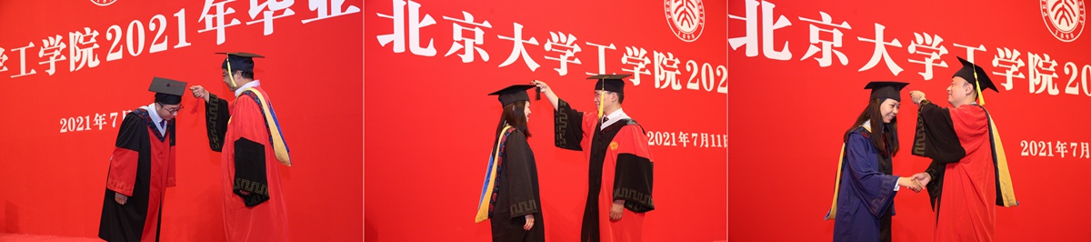 两场典礼最后分别进行了隆重的拨穗仪式。由宋洁主持并宣读毕业生名单,段慧玲、孙智利和陈正共同为2021届本科毕业生拨穗;段慧玲、孙智利、王启宁共同为2021届研究生毕业生拨穗。毕业生在庄重、有序的氛围中一一上台,接受老师们拨穗。
