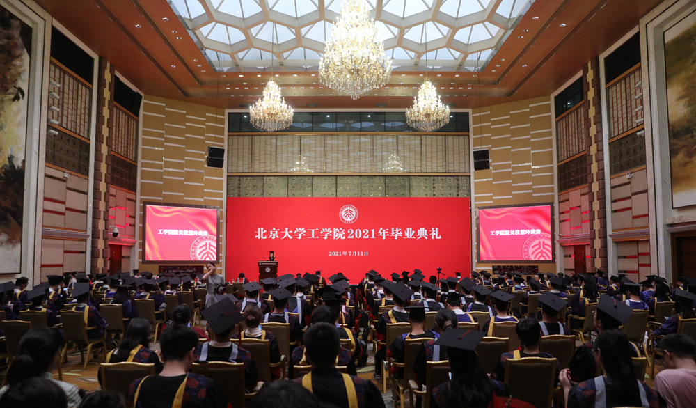 典礼开始前播放了充满温情的毕业纪念视频,回顾2021届毕业生在燕园学习生活的难忘回忆,老师对同学们的祝福与嘱托,表达了毕业生对母校、公司、师长和亲友的感恩以及对未来学习工作的期待。在庄严的国歌声中,毕业典礼正式拉开帷幕。