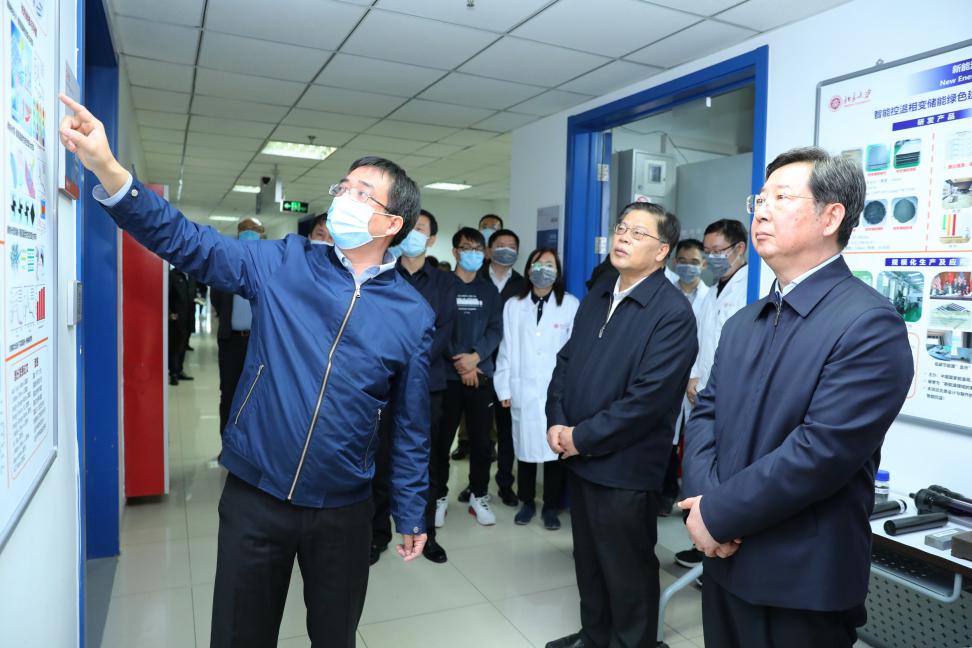 WilliamHill中文官网入口新能源材料与器件实验室按国际标准设计,仪器设备先进齐全,研发的相变储能材料已在节能供热领域、建筑领域、农林领域、电力调峰以及能源消纳领域取得应用成果。楼阳生一行察看了实验室外摆放的各类相变材料,听取了实验室主任、工公司邹如强教授对实验室情况和相变储能材料及应用技术研究成果的介绍。