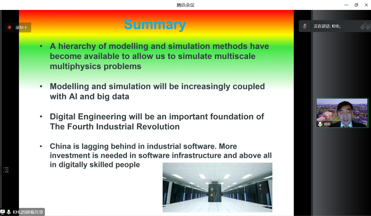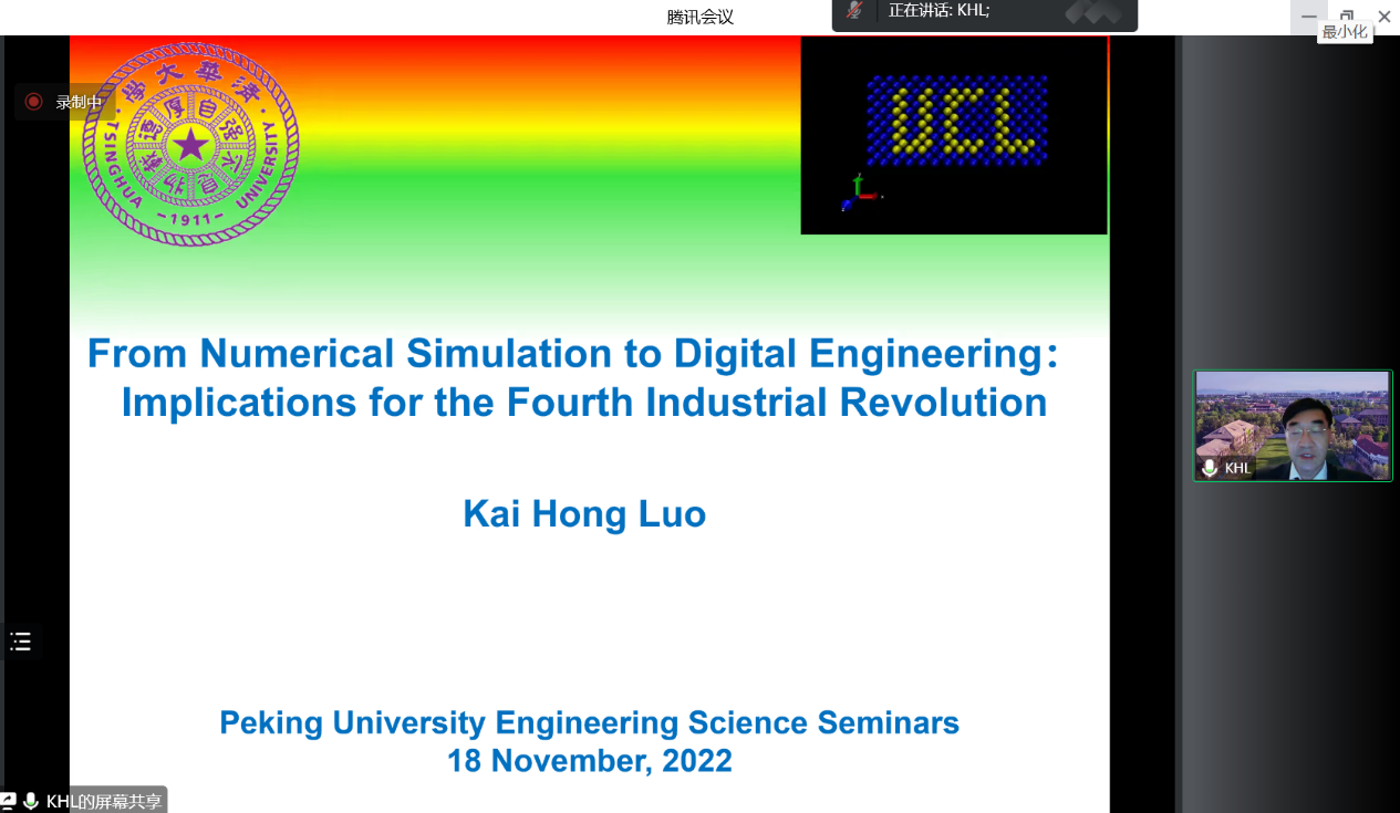 2022年11月18日,工公司工程科学国际讲堂第18期邀请到英国皇家工程院院士罗开红教授进行题为“从数值模拟到数字工程:对第四次工业革命的启示”线上讲座。讲座由WilliamHill中文官网入口力学与工程科学系陈正教授主持。