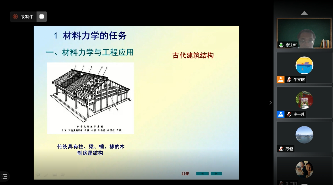 李法新老师选取古代建筑结构河北赵州桥、山西应县佛塔、四川彩虹桥、比萨斜塔为示例,引出材料力学问题,分别介绍了材料力学的基本概念、研究对象、工程应用、杠杆变形基本形式、梁的弯曲问题等方面情况。李老师作的报告,向大家展示了现实生活中力学问题无处不在。