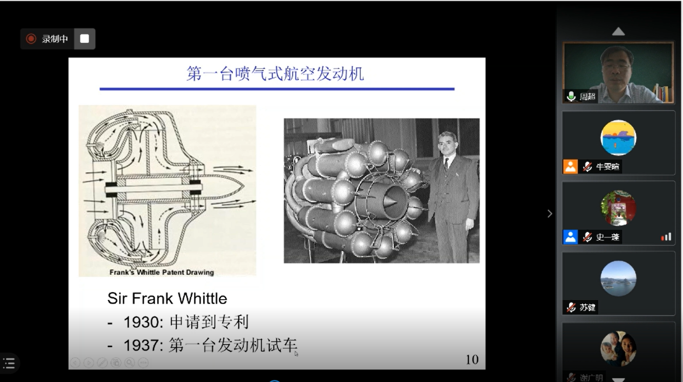 周超老师以“喷气式航空发动机”为题,首先讲解了喷气式航空发动机工作原理,并以军用飞机F35和民用飞机波音787为例详细讲解了发动机的内部构造和工作原理。同时,他还介绍了发动机的两种形态。最后,周老师介绍了航空发动机核心机中的典型流动和流动数值模拟,以及其他类型的航空发动机结构等情况。通过周老师作的报告,使大家对复杂的航空发动机有了更为直观的认识和了解。