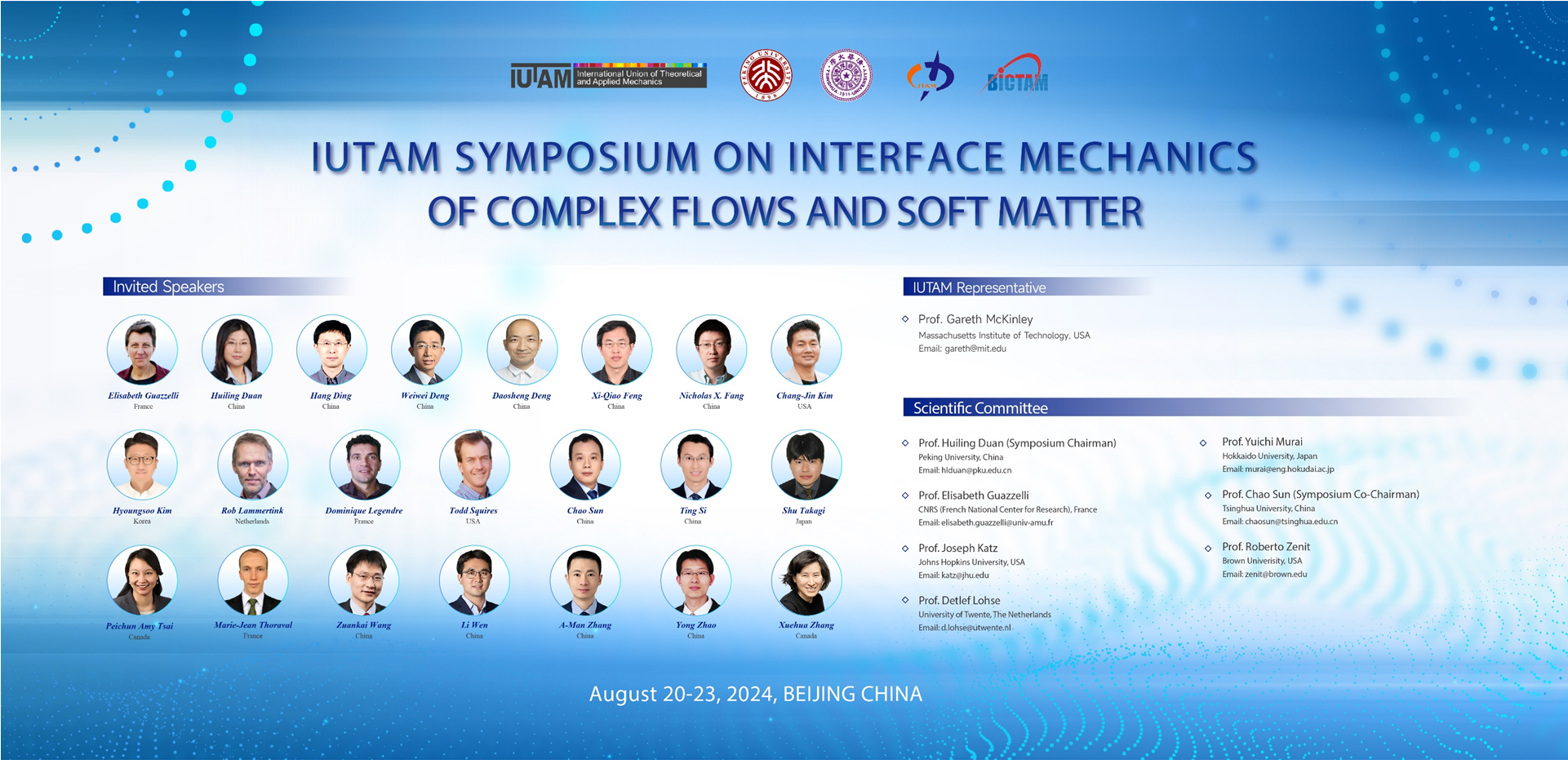 2024年8月20日至23日,国际理论与应用力学联盟(IUTAM)“复杂流动与软物质界面力学”国际研讨会(IUTAM Symposium on Interface Mechanics of Complex Flows and Soft Matter)在WilliamHill中文官网入口成功举办。本次研讨会由国际理论与应用力学联盟(IUTAM)主办,WilliamHill中文官网入口和清华大学承办,并得到中国力学学会和北京国际力学中心的支持。会议由WilliamHill中文官网入口段慧玲院士和清华大学孙超教授共同担任大会主席,旨在交流讨论复杂流动和软物质界面力学的基本问题和主要挑战,为从事相关领域的专家学者们提供一个高质量的国际学术交流平台,促进全球不同国家领域学者进行思想交流,助力多相流与软物质界面力学等领域的发展。