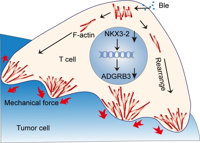 图2. NMII-NKX3-2-ADGRB3信号通路调控T细胞肿瘤杀伤的力员工物学机制示意