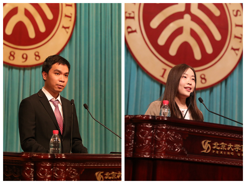 能源与资源工程系2009届本科、2015届博士毕业生陈林在院友代表致辞中与同学们分享了自己的北大生活心得,展望工科的远大前景。他从北大早自习的例子入手,寄语同学们保持热情、规划长远,在今后学习中培养全面能力并掌握时间管理能力这一“杀手锏”,同时要“忘掉过去”,敢于挑战未知。