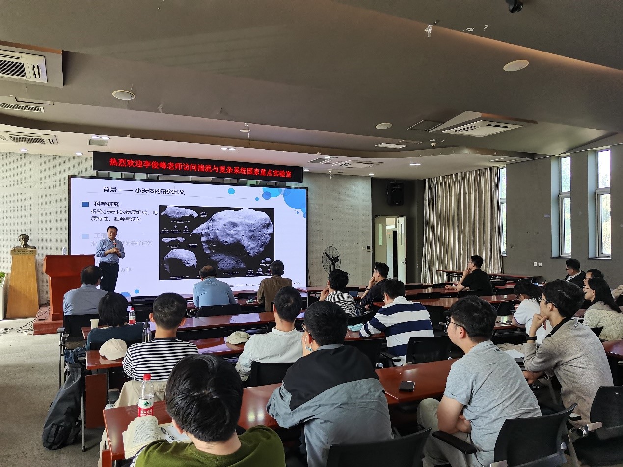 李俊峰教授的讲解生动幽默,现场氛围轻松活跃,其对小天体所蕴含的动力学问题的思考角度新颖独特,为大家提供了广阔的视野,激发了大家对动力学问题研究的灵感。报告结束后,在场师生与李教授进行了热烈的讨论。