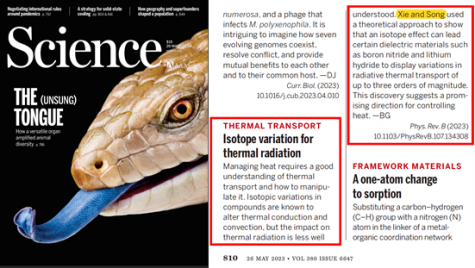 能源与资源工程系宋柏课题组首次理论预言热辐射的同位素效应 研究成果被《Science》高亮报道